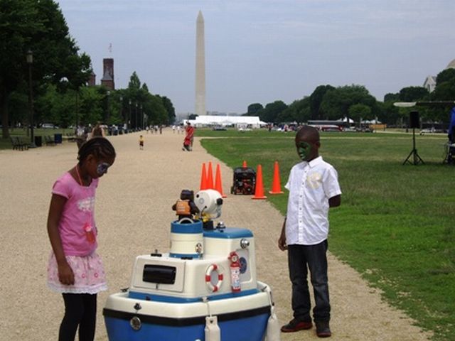 Two child dancers from the Ugandan Martyrs Namilyango Junior Boys School, Mukon visiting with Coastie.