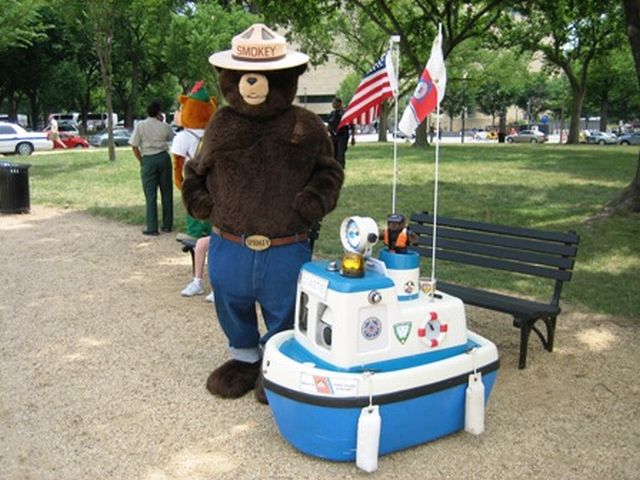 US Forest Service Smokey the Bear and USCG Auxiliary Coastie the Safety Boat.