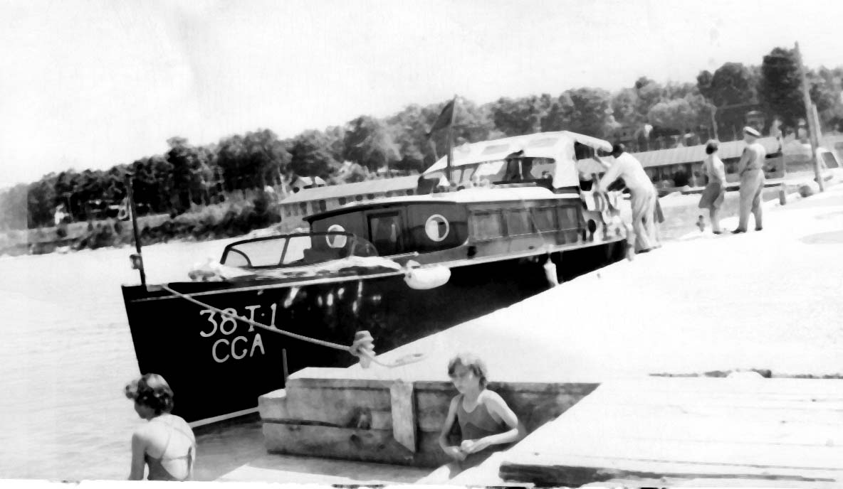 He had just taken delivery of a brand new 38’ mahogany Chris Craft that he volunteered as a Coast Guard Auxiliary facility. The Auxiliary quickly accepted his offer and the beautiful mahogany vessel's hull was immediately painted OD (olive drab) 38 T-1 CGA to comply with Coast Guard requirements. See attached photos.
